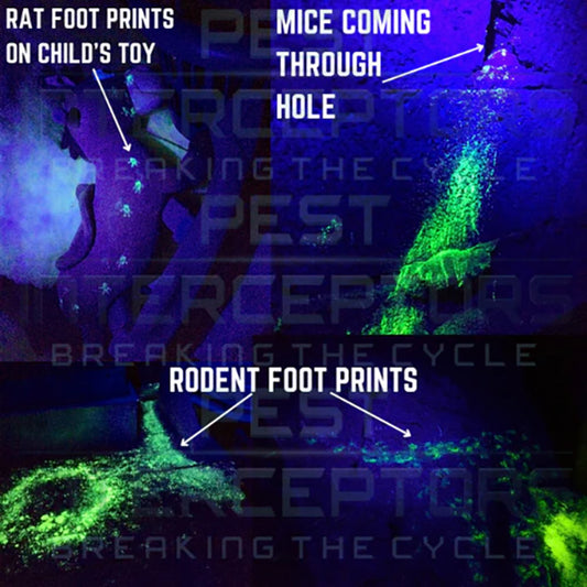 U.V Fluorescent Tracking Dust 100g Non-Toxic Including U.V Torch Light Blacklight Flashlight (100 LED) For Tracking Rodents - Rats/Mice/Squirrel For Tracing Pests Inside Home